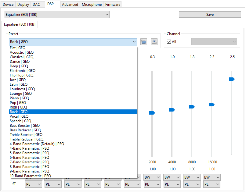 - On-board DSP: Parametric EQ (PEQ), Adaptive Loudness Compensation (ALC), Frequency Response Correction (FRC, AutoEq), Crossfeed, Surround, PCM/DSD Balance