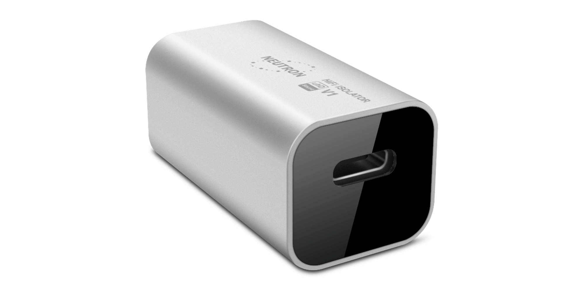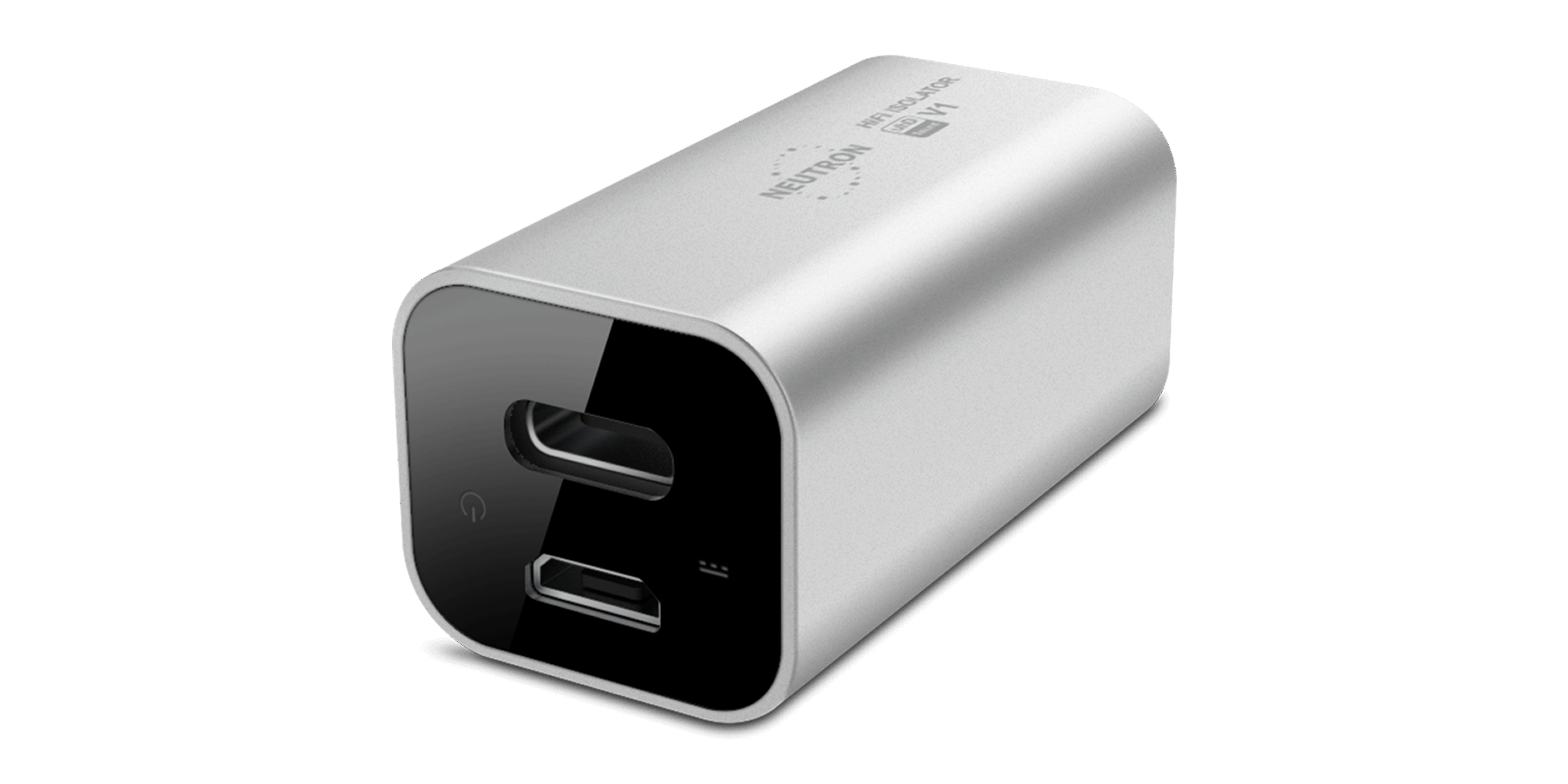 Neutron HiFi™ Isolator V1 (aka Virtuoso 1) is a portable, ultra-low-noise galvanic USB isolator from the Virtuoso series of ultra-portable devices. It features the lowest parasitic/coupling capacitance on the market at just 22 pF — eliminating analog noise introduced via power (VBUS) and data (D+/D−) lines by galvanically isolating the connected USB device's ground from the host's ground. The V1 re-clocks USB data using a high-precision, ultra-stable crystal oscillator and provides full protection against electrical hazards including EMI and ESD.